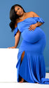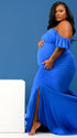 Momnfancy Off Shoulder Ruffle Mermaid V-Neck Cap Sleeve Bodycon Evening Gowns Photoshoot Maternity Maxi Dress