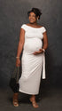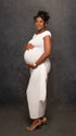 Momnfancy Off Shoulder Side Draped Ruched Photoshoot Maternity Maxi Dress