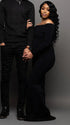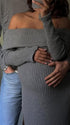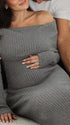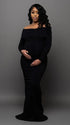 Momnfancy Off Shoulder Solid Color Mermaid Bodycon Elegant Photoshoot Maternity Maxi Sweater Dress