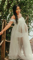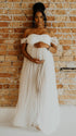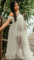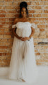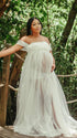 Momnfancy Off Shoulder Tulle Sheer Photoshoot Maternity Maxi Dress