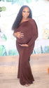 Momnfancy One-Shoulder Ruched Irregular Bodycon Party Mermaid Baby Shower Maternity Maxi Dress This coffee-colored maternity gown features a chic one-shoulder design with artistic ruched detailing for a stylish and distinctive party look. The asymmetrical neckline highlights your shoulders, while the dynamic draping gracefully follows your pregnancy silhouette. The mermaid hem flows elegantly with movement, creating a captivating visual effect. Made from stretchy fabric that gently supports your bump for all-day comfort. Perfect for baby showers, social gatherings, evening events, or maternity photoshoots, this dress lets you express your unique fashion sense, ensuring you stand out as the most memorable presence on any special occasion.