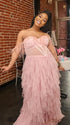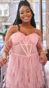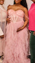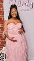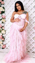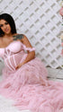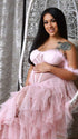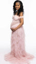Momnfancy Pink Bandeau Off Shoulder Feather Tulle Maternity Photoshoot Dress