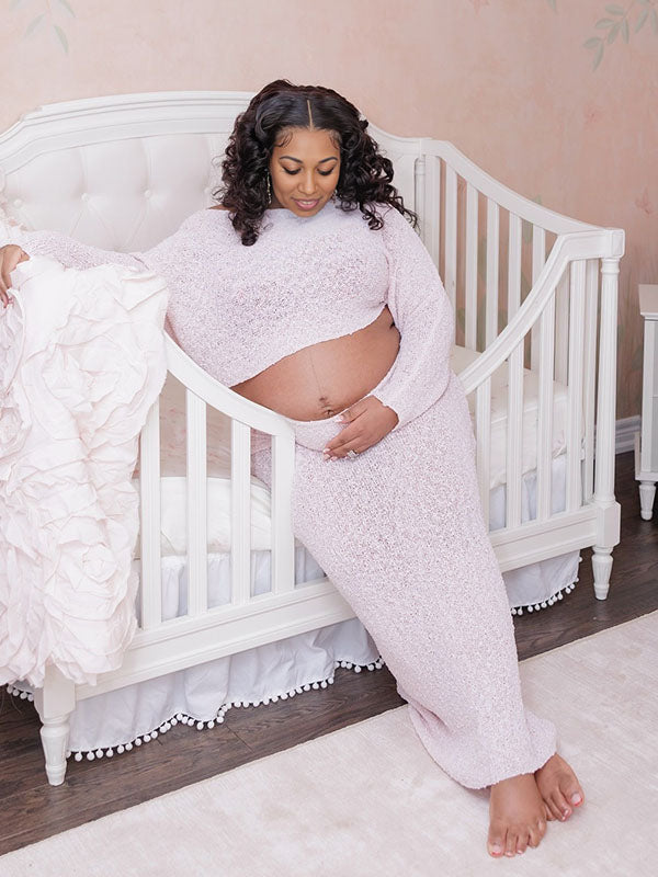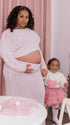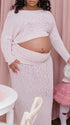 Momnfancy Pink Off Shoulder Knitwear 2-in-1 Crop Bodycon Photoshoot Maternity Maxi Dress