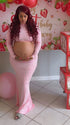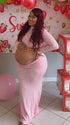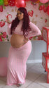 Momnfancy Pink Rhinestone 2-in-1 Crop Bodycon Plus Size Evening Gown Baby Shower Maternity Maxi Dress