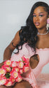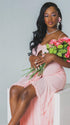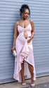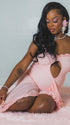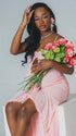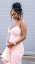Momnfancy Pink Ruffle Crop Cut Out Irregular Mesh Bodycon Photoshoot Maternity Maxi Dress