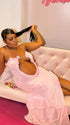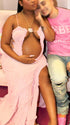 Momnfancy Pink Spaghetti Strap Backless Ruffle Cut Out Crop Bodycon Evening Gown Baby Shower Maternity Maxi Dress