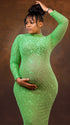 Momnfancy Print Bodycon Elegant Maternity Maxi Dresses