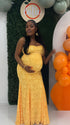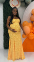 Momnfancy Print Spaghetti Strap Mermaid Open Back Maternity Maxi Dress