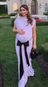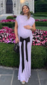 Momnfancy Purple Cut Out Bowknot Backless Bodycon Mermaid Evening Gown Baby Shower Maternity Maxi Dress