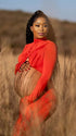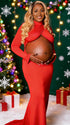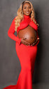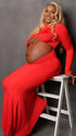 Momnfancy Red Cross Front Crop Cut Out Maternity Photoshoot Dress