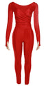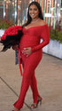 Momnfancy Red Off Shoulder Skinny Two Piece Outfit Maternity Jumpsuit