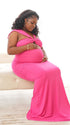 Momnfancy Rose Carmine Cross Chest Cut Out Bodycon Party Gown Mermaid Photoshoot Maternity Maxi Dress