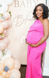 Momnfancy Rose Carmine One Shoulder Ruched Plus Size Baby Shower Maternity Maxi Dress
