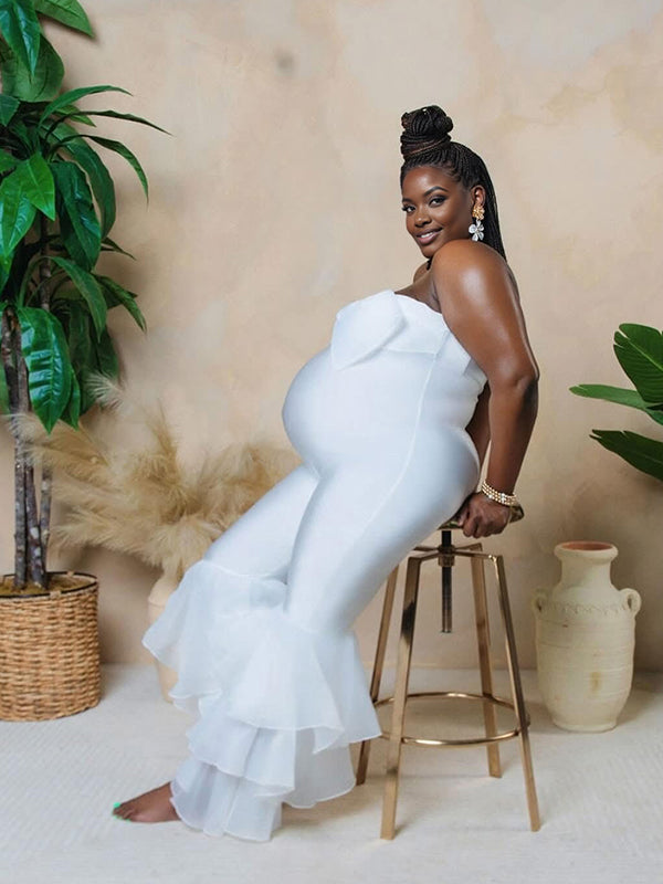 Momnfancy Ruched Floral Tube Top Maternity Jumpsuits