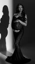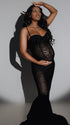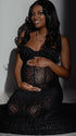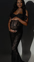 Momnfancy Sheer Spaghetti Strap Backless Leopard Mermaid Bodycon Photoshoot Maternity Maxi Dress