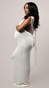 Momnfancy Solid Color Backless Bodycon Photoshoot Maternity Maxi Dress