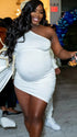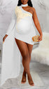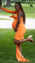 Momnfancy Solid Color Feather Splicing Draped One Shoulder Irregular Bodycon Party Photoshoot Maternity Mini Dress