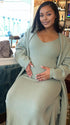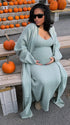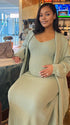 Momnfancy Solid Color Knitting V-Neck Bodycon Cardigan 2-in-1 Maternity Sweater Maxi Dress