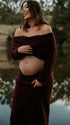 Momnfancy Solid Color Off Shoulder Crochet Knitwear Two Pieces Set Bodycon Elegant Going Out Gowns Photoshoot Maternity Sweater Maxi Dress