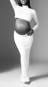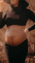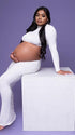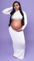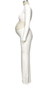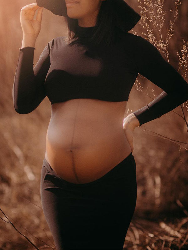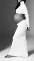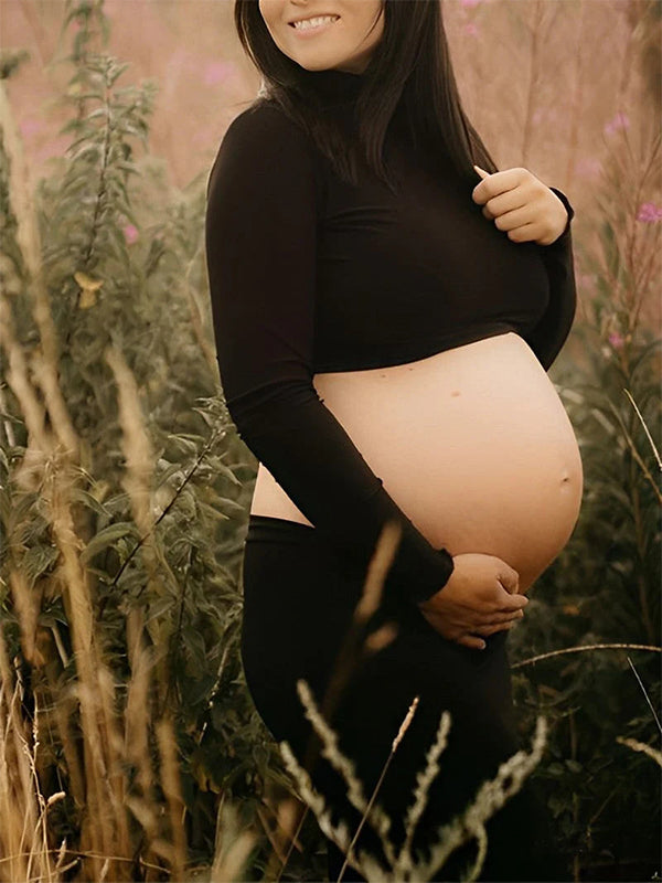 Momnfancy Solid Color Ruffle High Neck Crop Top 2-in-1 Long Sleeve Bodycon Club Party Photoshoot Maternity Maxi Dress