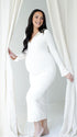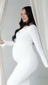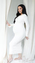 Momnfancy Solid Color V-Neck Knit Split Long Sleeve Bodycon Going Out Photoshoot Maternity Sweater Maxi Dress