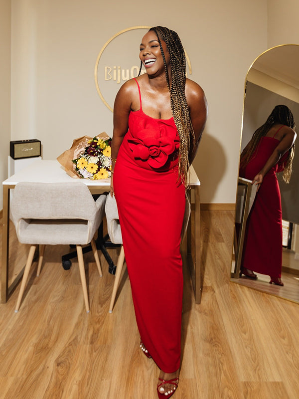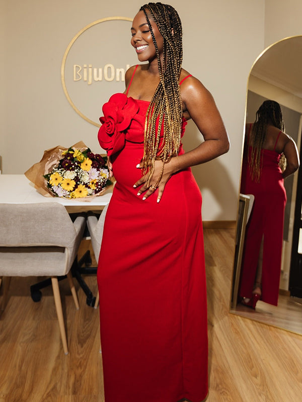 Momnfancy Spaghetti Strap 3D-flowers Bodycon Evening Gowns Baby Shower Maternity Maxi Dress