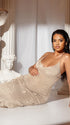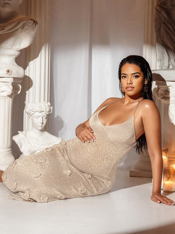 Momnfancy Spaghetti Strap 3D-flowers Open Back Maternity Maxi Dress