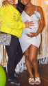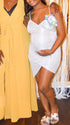 Momnfancy Spaghetti Strap Backless Bright Wire Ruched Bodycon Baby Shower Maternity Mini Dress