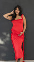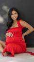 Momnfancy Spaghetti Strap Falbala Bodycon Side Slit Maternity Maxi Dress