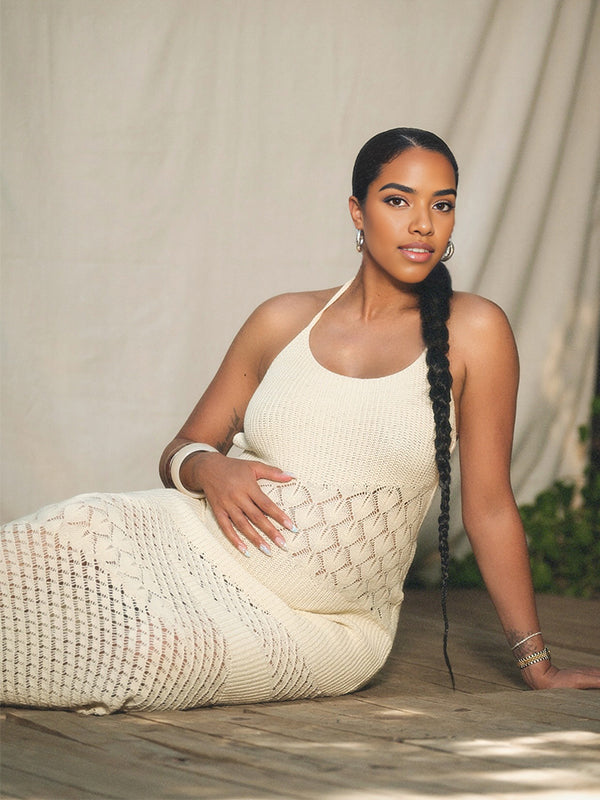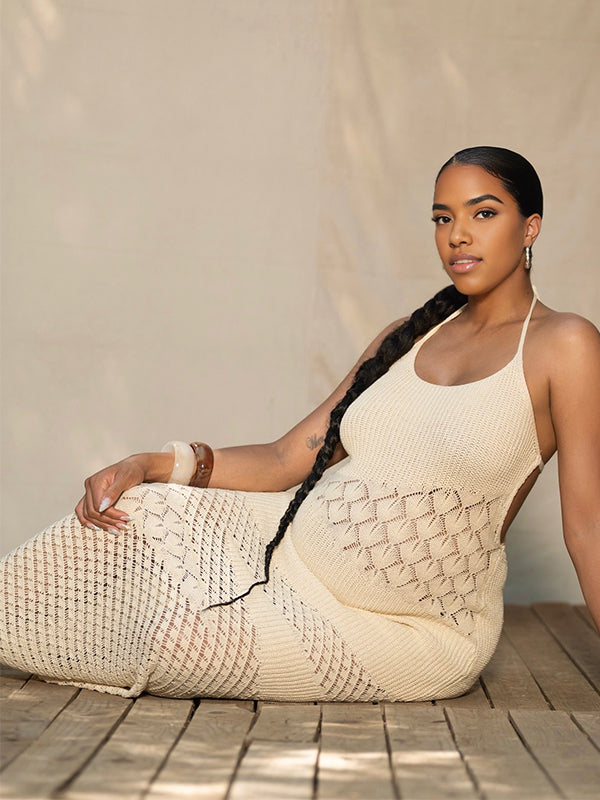 Momnfancy Spaghetti Strap Knitted Cut-out Maternity Maxi Dress