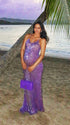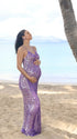 Momnfancy Spaghetti Strap Mermaid Open Back Sparkly Maternity Maxi Dress