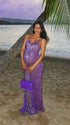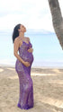 Momnfancy Spaghetti Strap Mermaid Open Back Sparkly Maternity Maxi Dress.This purple maternity gown combines delicate spaghetti straps with a daring open back for an elegant and sensual party look. The thin straps frame your shoulders, while the deep back cutout highlights your graceful spine. The mermaid hem elongates your silhouette, and the subtle sparkle creates a luminous effect. The royal purple hue radiates sophistication, with a stretch lining that gently supports your bump. Perfect for evening galas, prom events, maternity photoshoots, or romantic dates, this dress will make you embody the enchanting beauty of a lavender field under the moonlight.
