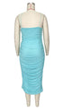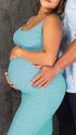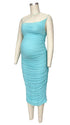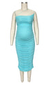 Momnfancy Spaghetti Strap Mesh Ruched Bodycon Babyshower Maternity Midi Dress