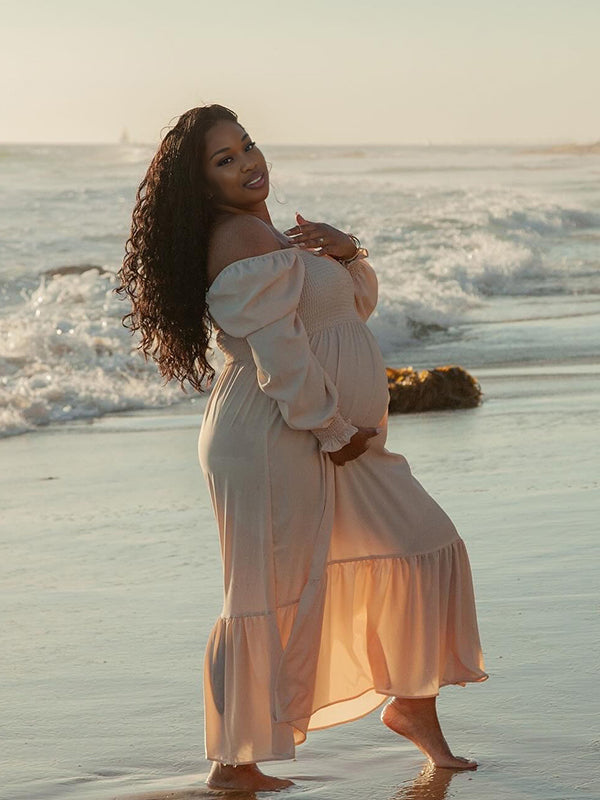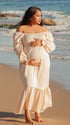 Momnfancy Square Neck Falbala Waist-cinching Tightness Photoshoot Maternity Maxi Dress