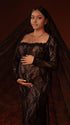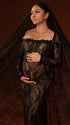 Momnfancy Square Neck Lace Splicing Bodycon Maternity Maxi Dress