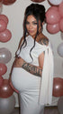 Momnfancy Strap Ties One Shoulder Baby Shower Maternity Maxi Dress