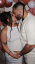 Measure around the fullest part of your hips and just below your bump.
