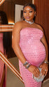 Momnfancy Tube Rhinestones Sparkly Bodycon Backless Party Gown Maternity Maxi Dress