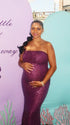 Momnfancy Tube Top Open Back Sparkly Mermaid Maternity Maxi Dress
