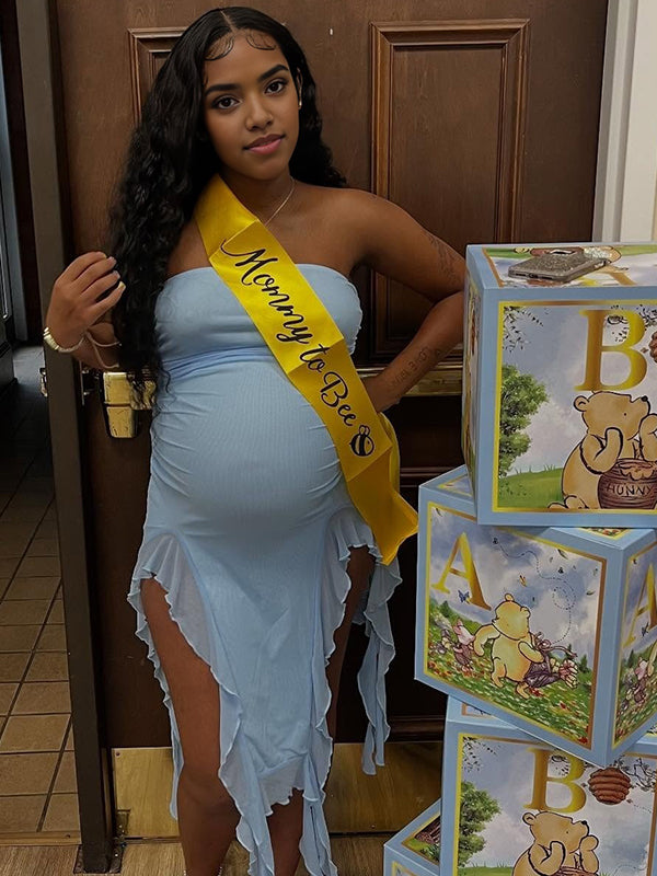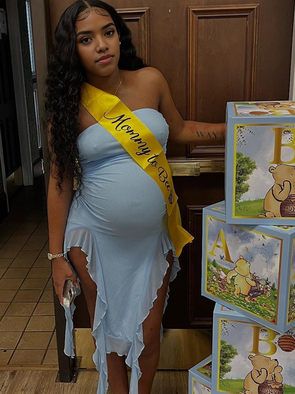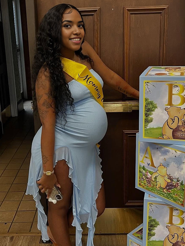 Momnfancy Tube Top Side Slit Maternity Midi Dress
