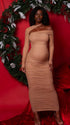 Momnfancy Tulle Sheer Ruched Bodycon Cut-out Christmas Photoshoot Maternity Maxi Dress