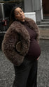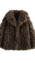 Momnfancy Turndown Collar Faux Fur Vintage Oversized Everyday Maternity Coat