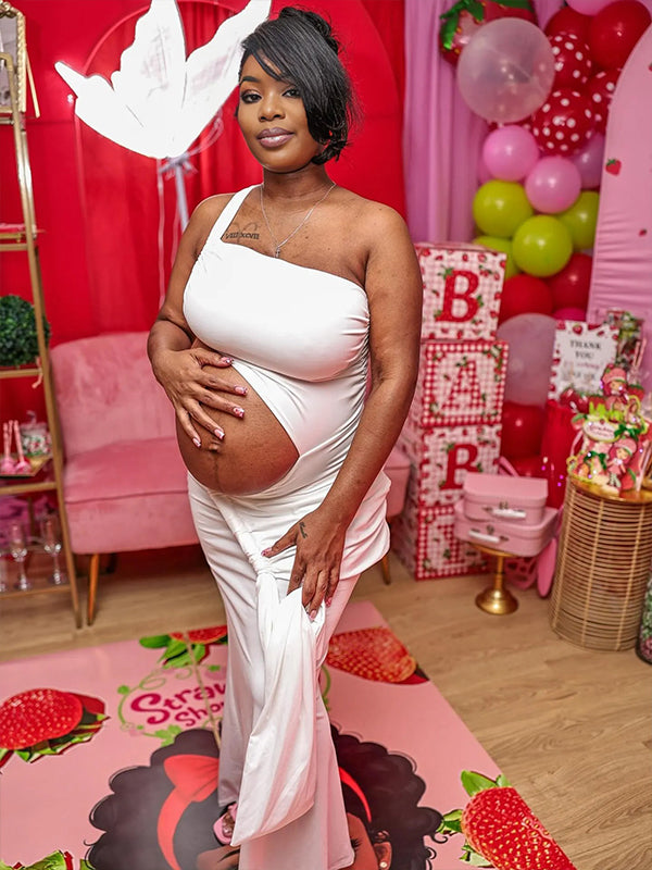 Momnfancy Twist Backless One Shoulder Maternity Maxi Dresses