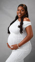 Momnfancy Water Ripples Oblique Shoulder Maternity Maxi Dresses