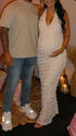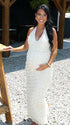 Momnfancy White Backless V-Neck Bodycon Baby Shower Maternity Maxi Dress