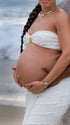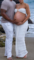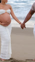 Momnfancy White Bandeau 2-in-1 Crop Draped Ruffle Bodycon Photoshoot Maternity Maxi Dress