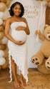 Momnfancy White Bandeau Strapless Ruffle Falbala Baby Shower Maternity Maxi Dress