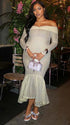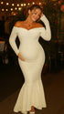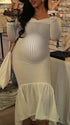 Momnfancy White Bowknot Off Shoulder Ruched Bodycon Evening Mermaid Gown Maternity Maxi Dress