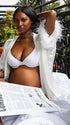 Momnfancy White Feather Splicing Mini Dress Cardigan Sleepwear Photoshoot Maternity Robe