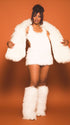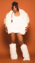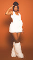 Momnfancy White Fur Backless Bodycon U-Neck Prom Evening Party Photoshoot Maternity Mini Dress